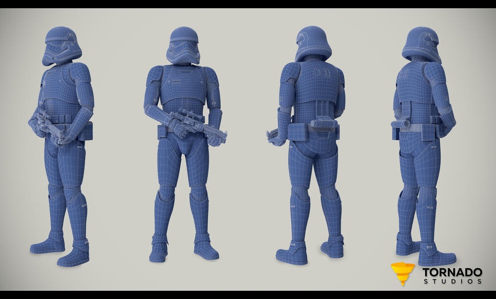 The asset is fully rigged and it is created to the highest industry standards – Checkmate. There are of course many references online but the Stormtrooper has changed somewhat between the different episodes. The design that you see here is from the 7th movie.
